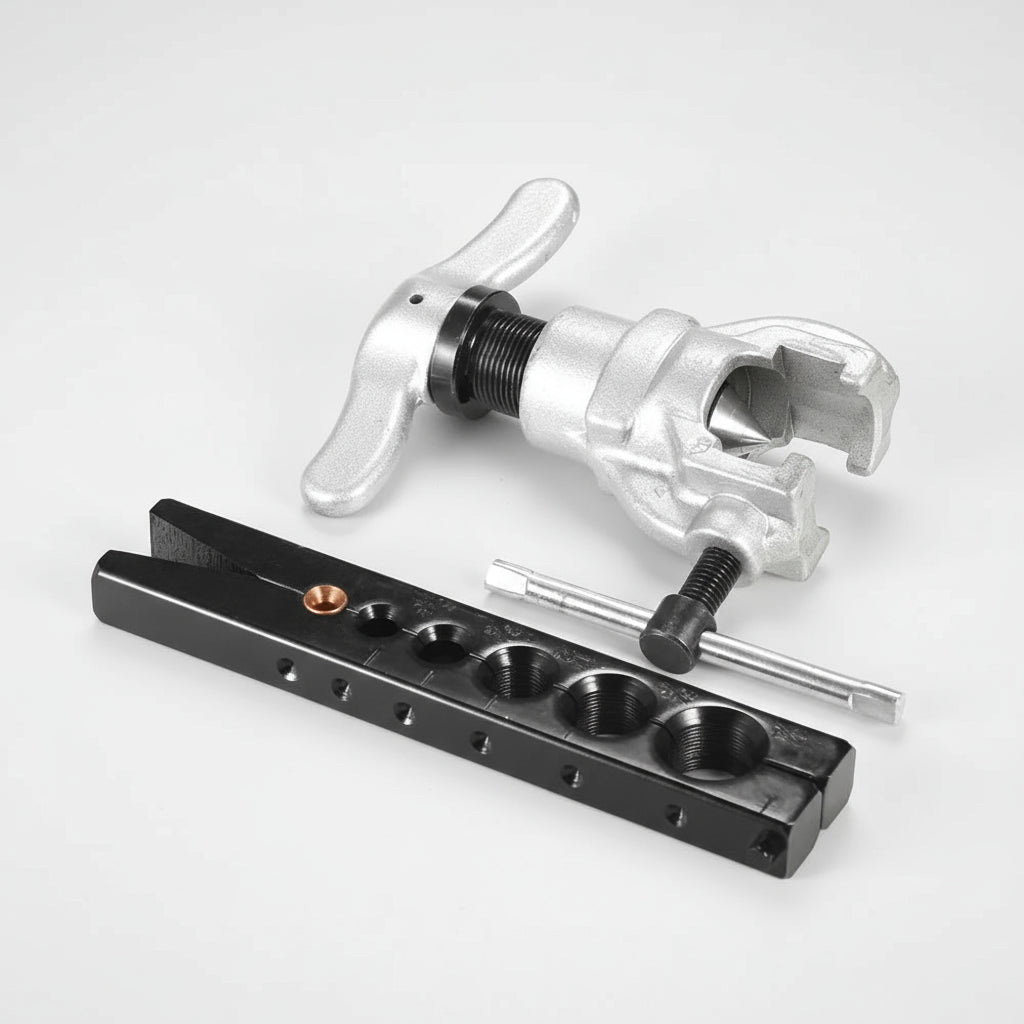 High quality flaring tool kit for flaring lines, braking pipe repairs, water, gas, refrigeration and brake line applications.