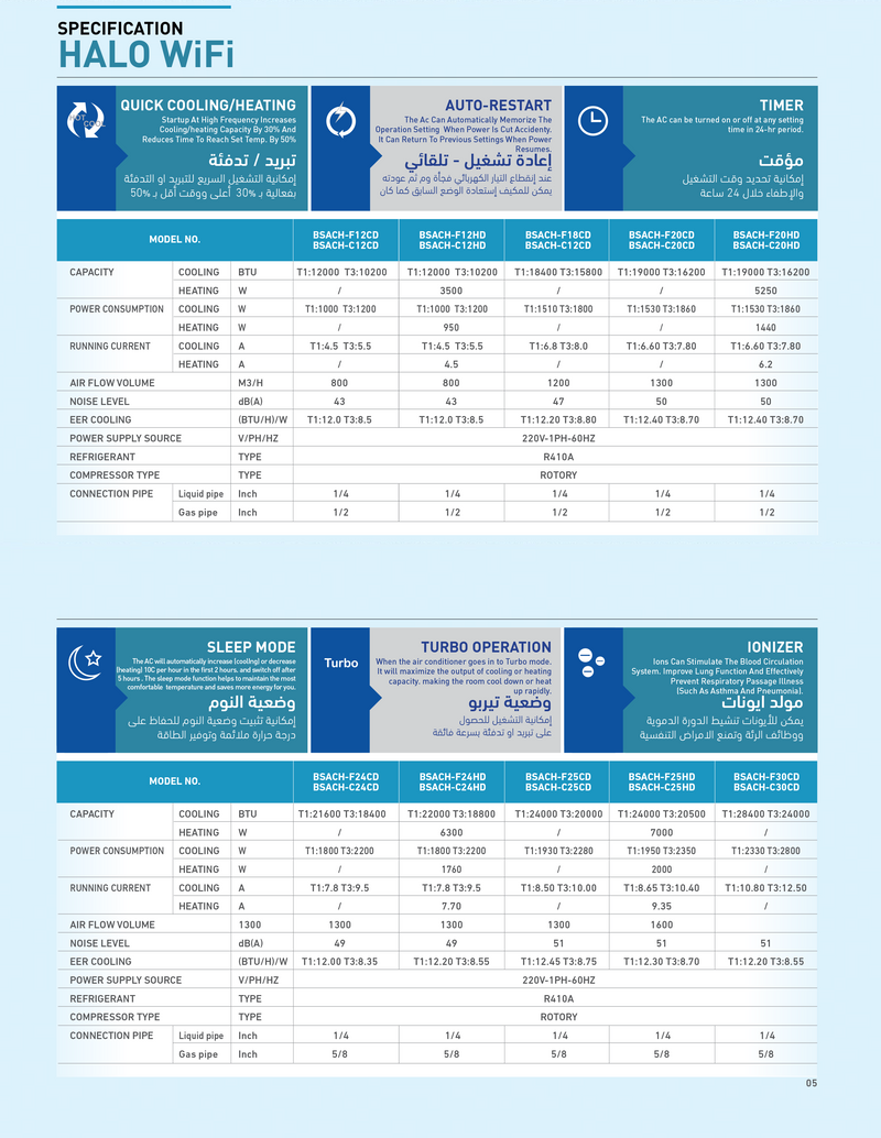 السعة: 18400 وحدة حراريه بريطانية / 1.5 طن