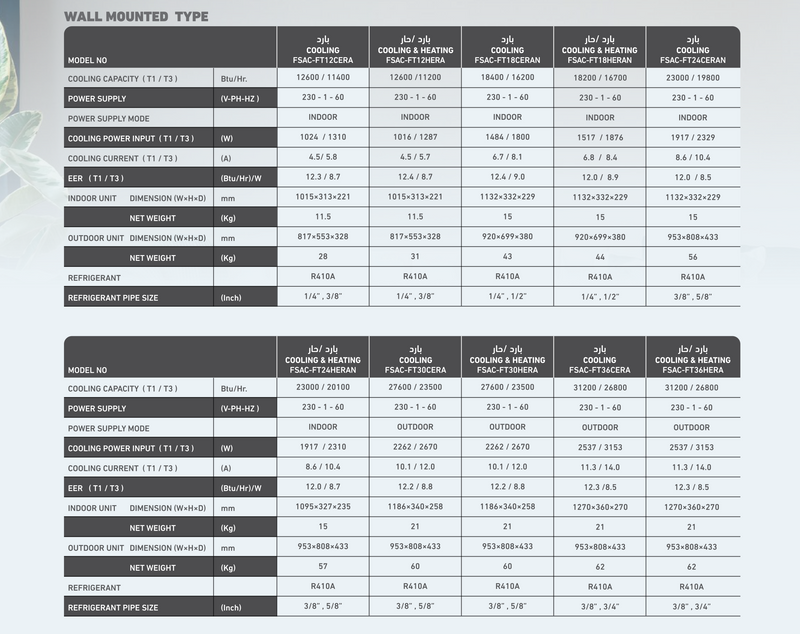 السعة: 18400 وحدة حرارية بريطانية / 1.5 طن